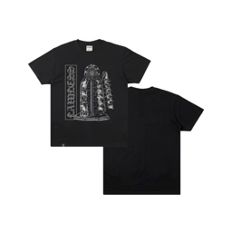 An iron maiden reimagined in ink, spikes, shadows and a face staring from the void. The front graphic pairs medieval torture iconography with the word LAWLESS in vertical gothic script, a twisted juxtaposition that feels like a relic torn from a dungeon wall. The back stays stark and unmarked, letting the front carry all the menace. Printed with high‑quality plastisol ink on 24s heavyweight cotton, this tee is built for longevity. Double‑stitched collars, taped neck and shoulders, and a cut that holds its shape like chains that never rust.