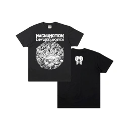 Magnumotion x Lawless Jakarta unite in Circle Pit, a chaotic clash rendered in dense monochrome detail. All graphics are printed using quality plastisol ink on heavy 24s cotton, giving the artwork sharp definition and long‑lasting impact. Reinforced with double‑stitched collars plus taped neck and shoulders, this tee is built to withstand the wear of the pit and the street alike. Designed for those who carry chaos and defiance on their chest, Circle Pit is a collaboration that refuses to fade.