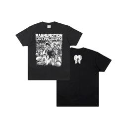 Magnumotion x Lawless Jakarta channel the frenzy of the pit in Singalong, a chaotic concert scene captured in stark monochrome. All graphics are printed using quality plastisol ink on heavy 24s cotton, giving the artwork sharp definition and long‑lasting impact. Reinforced with double‑stitched collars plus taped neck and shoulders, this tee is built to endure sweat, stage dives and street wear alike. For those who carry chaos and defiance on their chest, Singalong is a collaboration that needs to be celebrated.